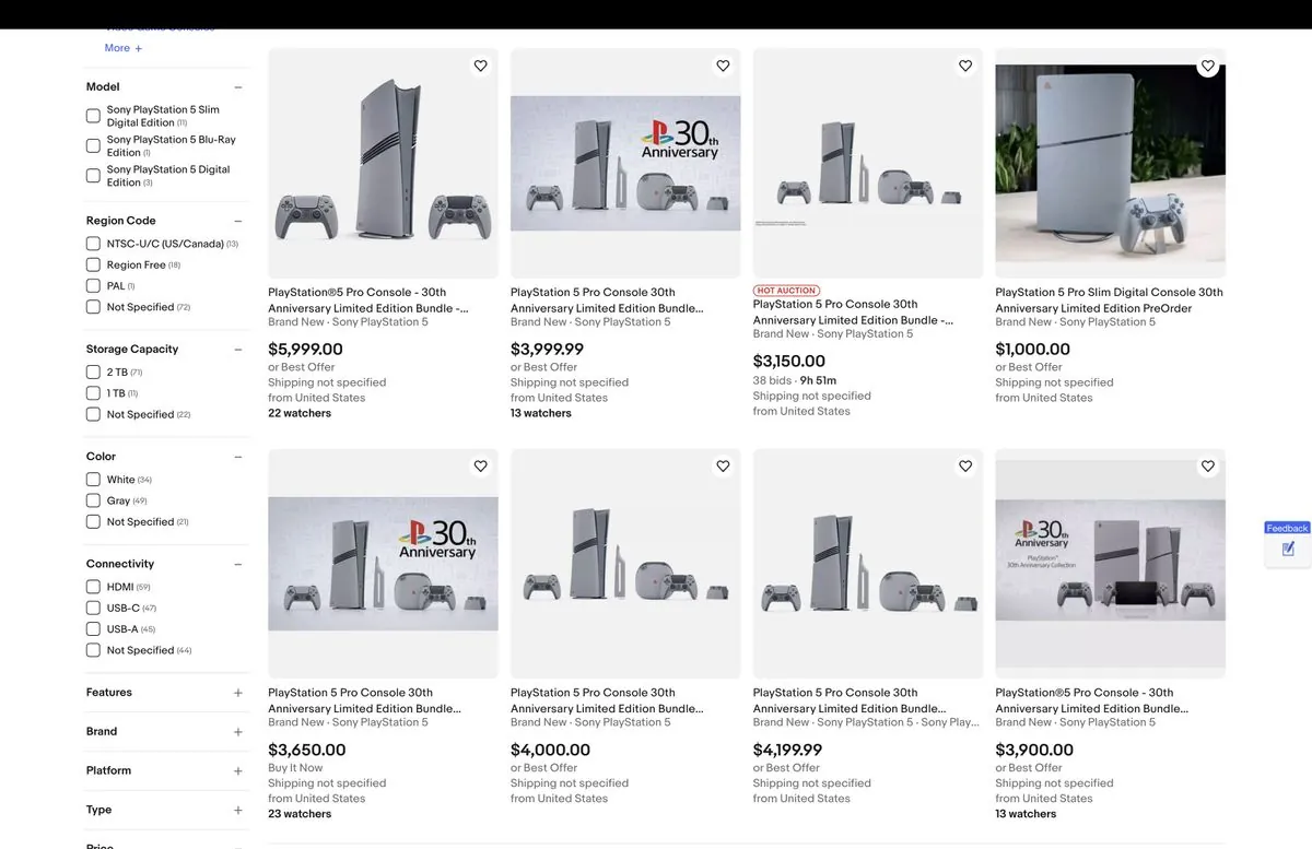 索尼新发布的 PS5 Pro 和其 30 周年纪念定量版现已开端承受预定,黄牛们现已开端在 eBay 上